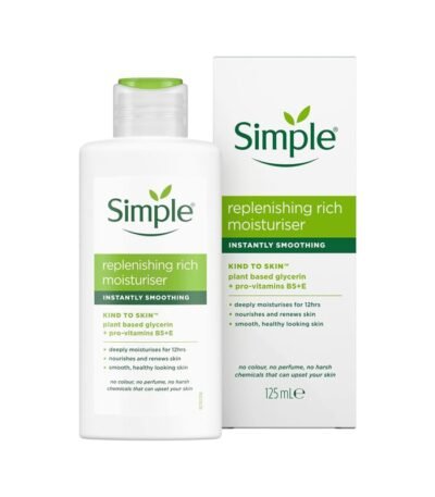 Simple Kind to Skin Replenishing Rich Moisturizer হল একটি প্রাকৃতিক ময়েশ্চারাইজার যা ত্বককে উজ্জ্বল করে এবং ব্রণ প্রতিরোধ করে। এটি ত্বকের দাগ হালকা করে এবং ত্বকের সৌন্দর্য বৃদ্ধি করে।