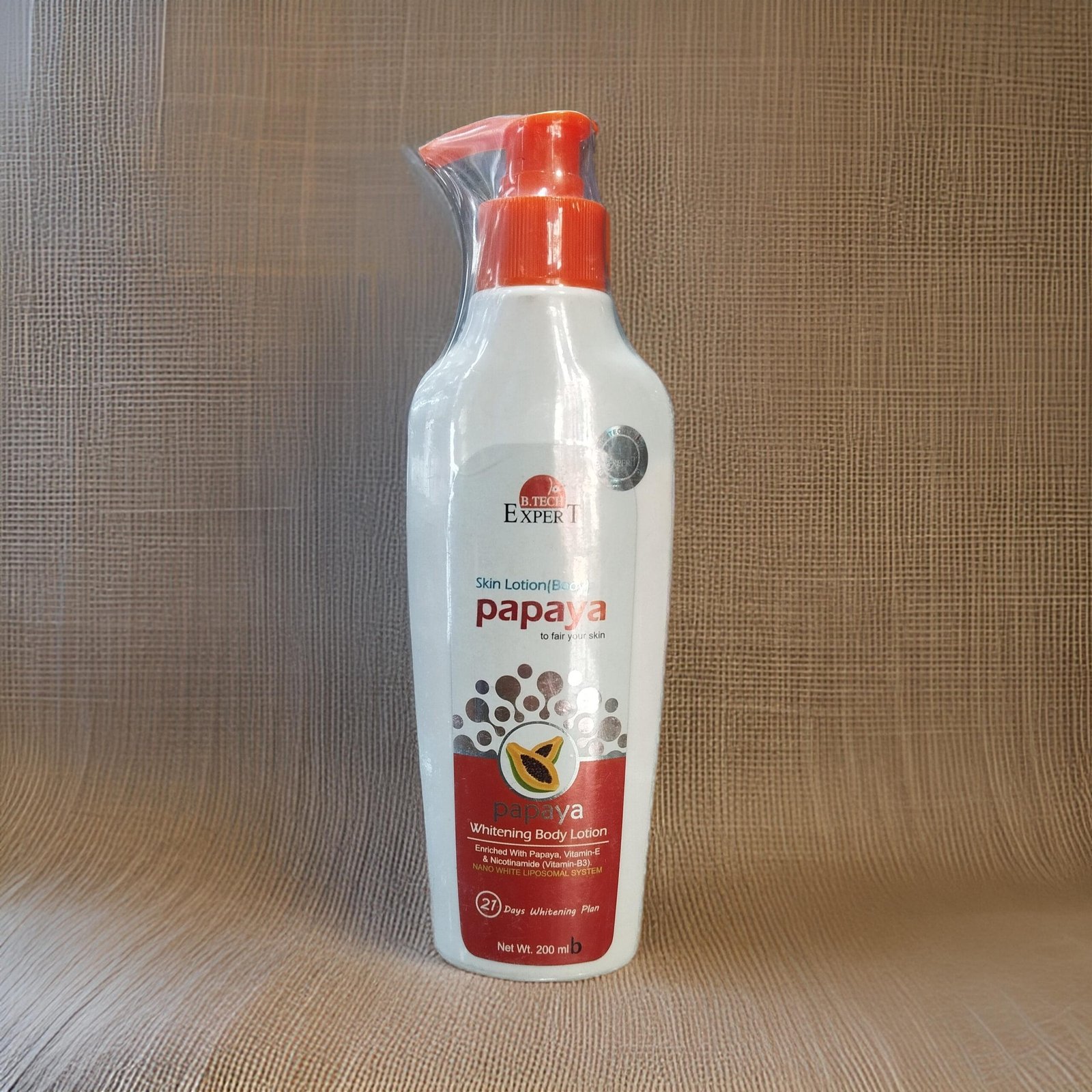 B.Tech Expert Papaya Body Lotion একটি luxurious এবং deeply hydrating lotion যা effectively skin deeply hydrate করে এবং texture improve করে। Papaya extract সমৃদ্ধ এই lotion টি effectively skin tone even করে এবং dark spots reduce করে।